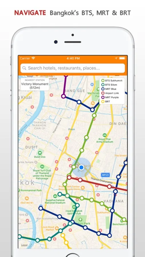 Looking for the nearest public transport in Bangkok? The 'Next Station - Bangkok Navigator' app shows BTS, MRT, BRT and Airport Link stations on one map.
