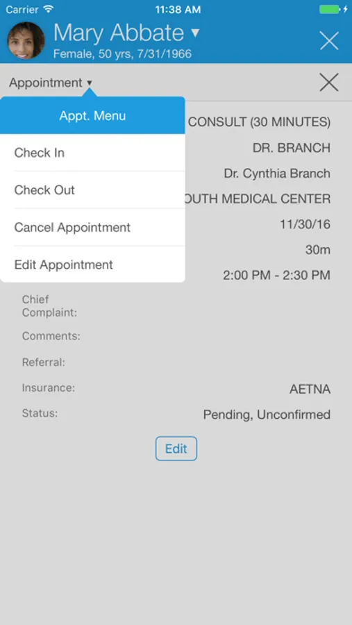 - View appointment summaries, including visit details and patient balances