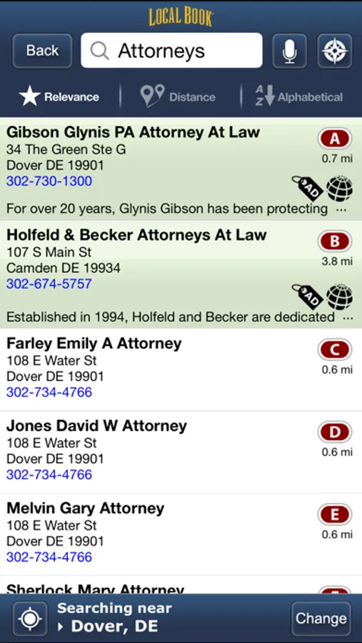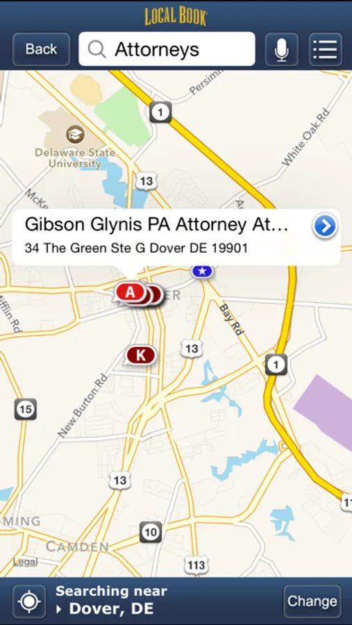 Search the Yellow Pages for businesses in your area or any city nationwide. Access business addresses, phone numbers, websites, email, ads, coupons and other enhanced listing data of our participating yellow page publishers. Sort by distance to find the closest results or sort by relevance of your search term. View results in a list view or toggle through results on a map. Zoom and scroll features in the map view allow users to find results in any area. Easily find local businesses anywhere in the United States with the LocalBook iPhone Application.