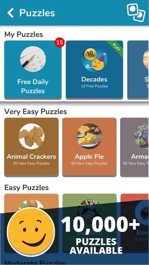 The app also includes more than 10,000 puzzles that have been compiled since the original release of the app in 2011. There are themed and non-themed puzzles of every difficulty level (all available in US and UK English versions), as well as puzzles in Spanish and puzzles written for an Australian audience.