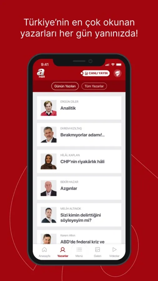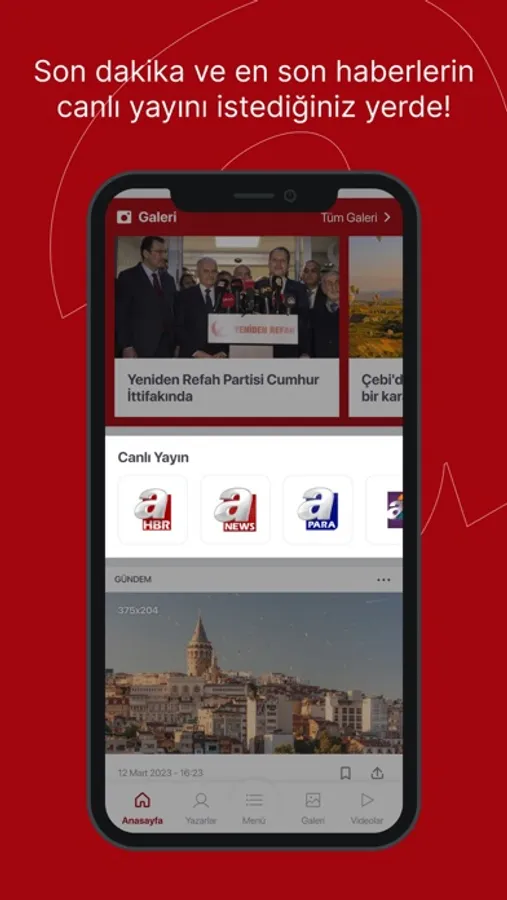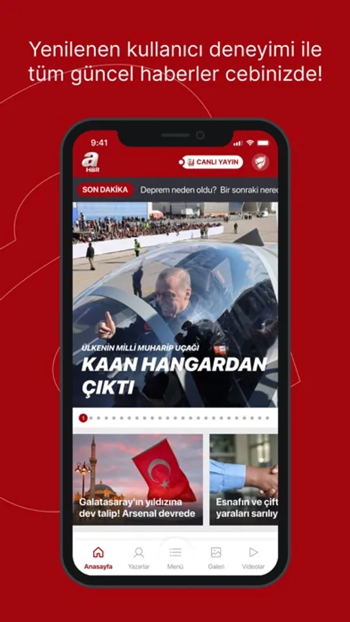 A Haber’in mobil uygulaması ile Türkiye ve Dünya’dan son dakika haberlerini anında takip edebilirsiniz. Günün en önemli gelişmelerini anında öğrenmekle kalmayacak, Türkiye’nin en çok izlenen haber kanalı A Haber canlı yayınını dilediğiniz an cebinizden izleyebileceksiniz.