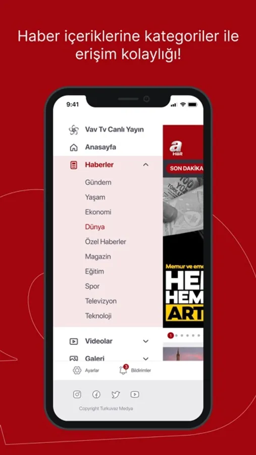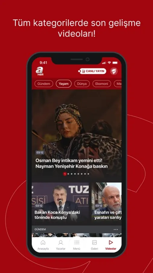 * Canlı Yayın kategorisinden ATV, AHaber, ASpor, ANews, A2, Minika Go, Minika Çocuk kanallarımızı 7/24 canlı tv olarak cebinizden izleyebilir, Turkuvaz Radyolarını dinleyebilirsiniz.