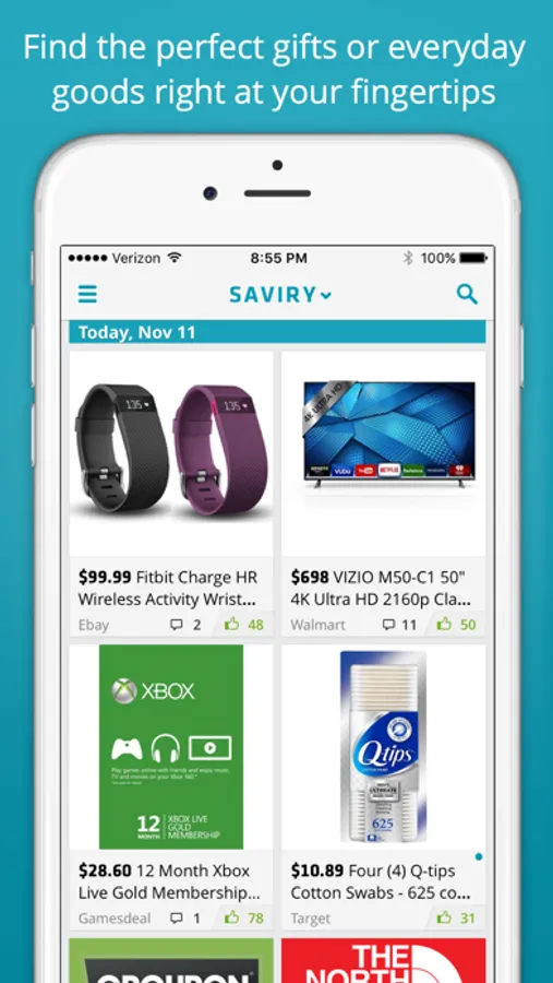 Saviry helps you save and gives you ideas at the same time! It shows you the most recent deals in electronics, clothing, gifts, HDTVs, blu-ray movies, games, groceries, home essentials and many more..