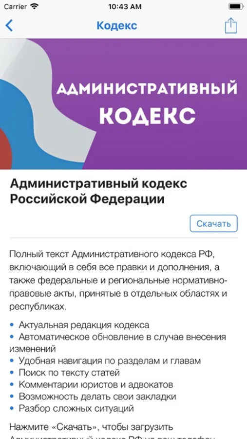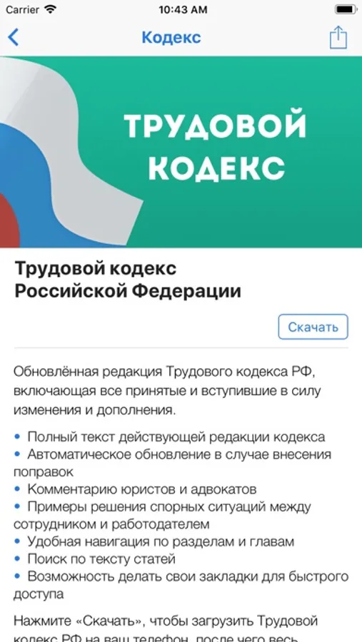 Наше приложение содержит в себе новейший редакции основных кодексов РФ в доступном изложении и развёрнутыми комментариями юристов.