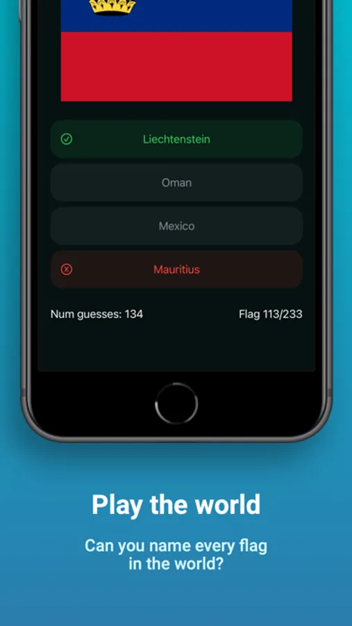Play the endless World mode if you want to keep going and see how many you can guess before you run out of lives. You have the option to continue after viewing a short ad to replenish your lives.