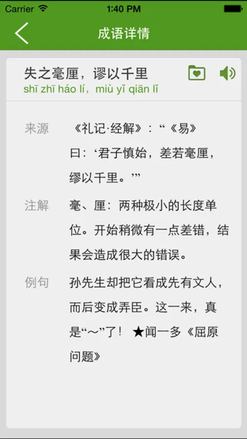 词库提供海量的内容,并提供了每个成语的注解、来源、例句。