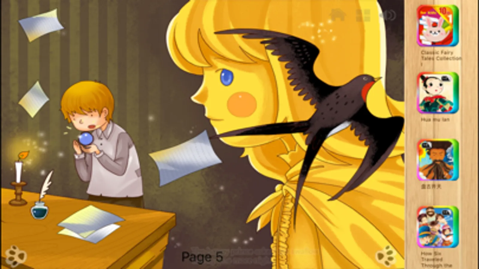 • Stunning animation effect on each page.The little swallow, the manuscript paper on the table and the little girl and etc. special effects. Make the person at the scene.