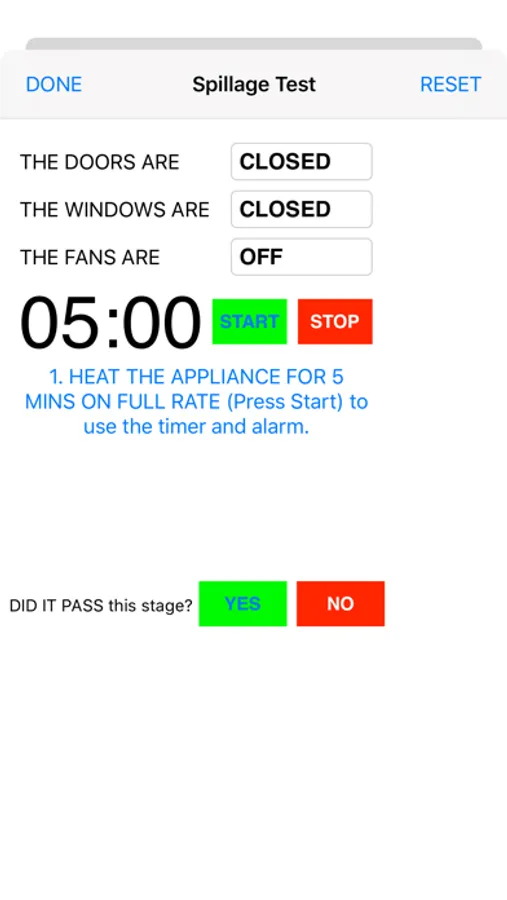 Selection of testing methods for best practice. Use the timer to remind you when the heating process is finished. The process will then tell you what the next step is more heat or fail, When to open doors and turn on fans, when to add more ventilation to the room.