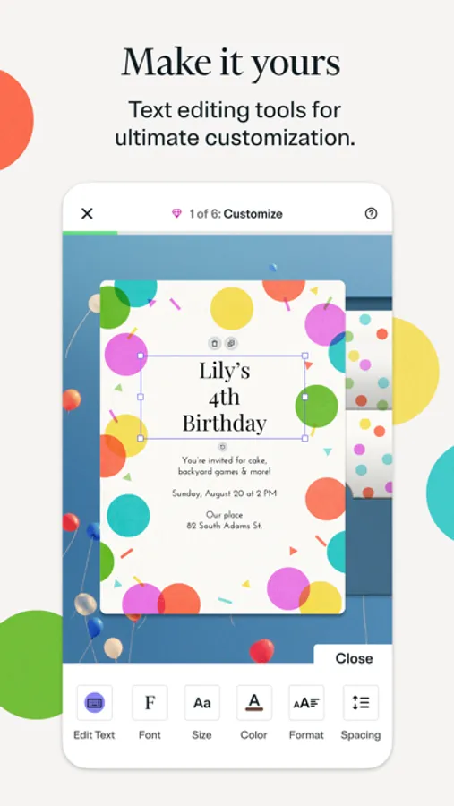 • Invite more people, edit your event settings, or control notifications at any time. Our goal is to be the best invitation maker app, and making it fun and simple for people to host—from creating event invites to sending text invites to thank-you notes—is how we do just that!