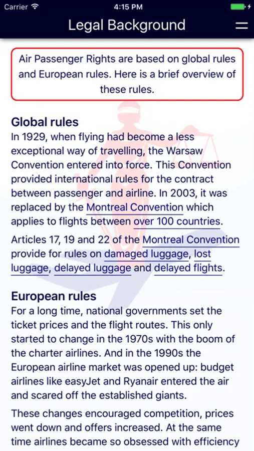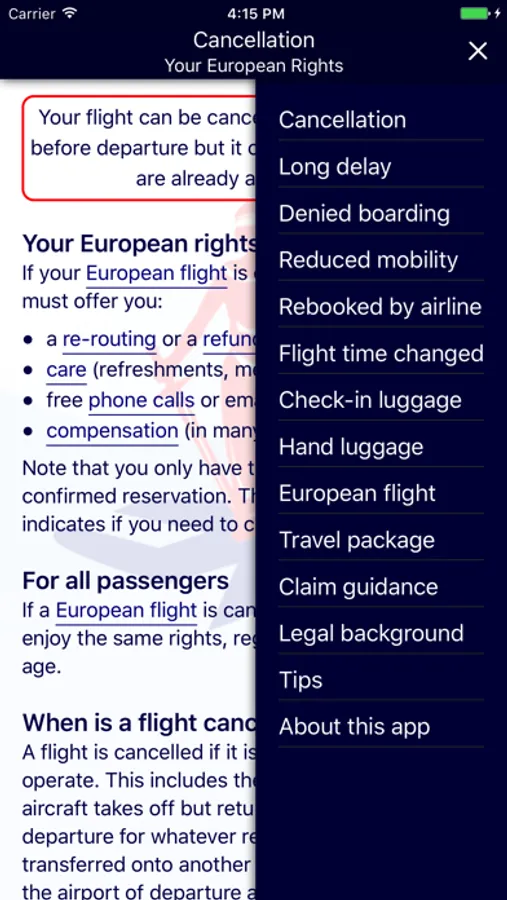 The App explains your Air Passenger Rights (regardless of your nationality or age) when you fly: