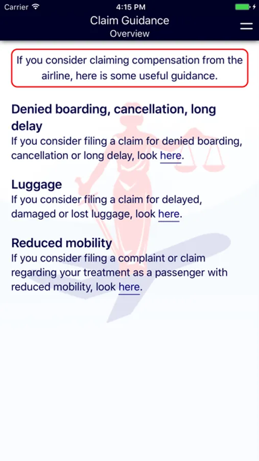 This App explains your Air Passenger Rights and helps you filing a complaint or a claim against the airline. It gives you the information you always wanted to have - but airlines were afraid to tell you.