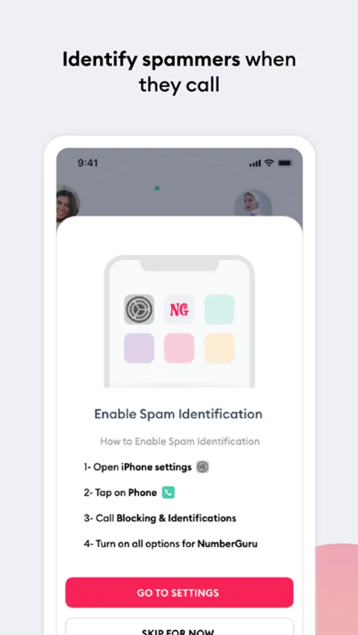 Free yourself from annoying telemarketers & phone scammers. With the NumberGuru spam identification (Spam ID) feature we will let you know when we’ve identified a spam call right within your native iOS phone app!