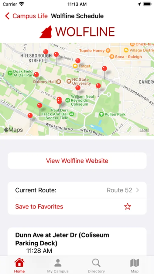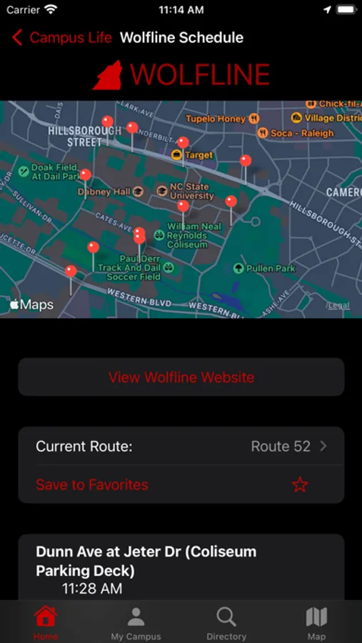 Be sure to get our Apple Watch app too! It features easy access to Wolfline routes, NC State Dining and WolfBytes radio. For your safety, it includes one-button access to call a Safety Escort or Campus Police. The app is also integrated with the WolfAlert notification system.