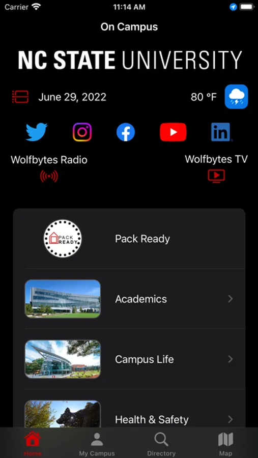 Wolfpackers, On Campus is the official app for NC State University and your guide to life on campus. On Campus has been designed to meet the needs of current and prospective students, faculty, staff, and visitors.