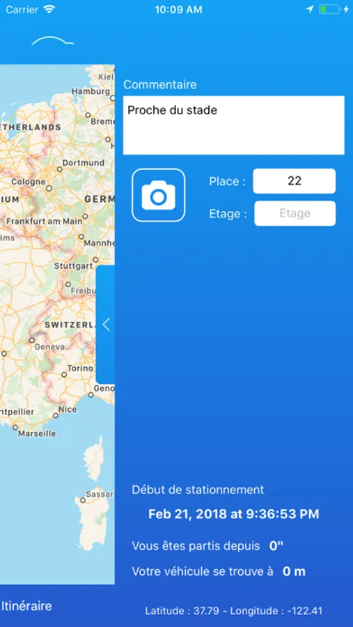 1 : Garez-vous et enregistrer votre position. Vous pouvez fermer l'application.