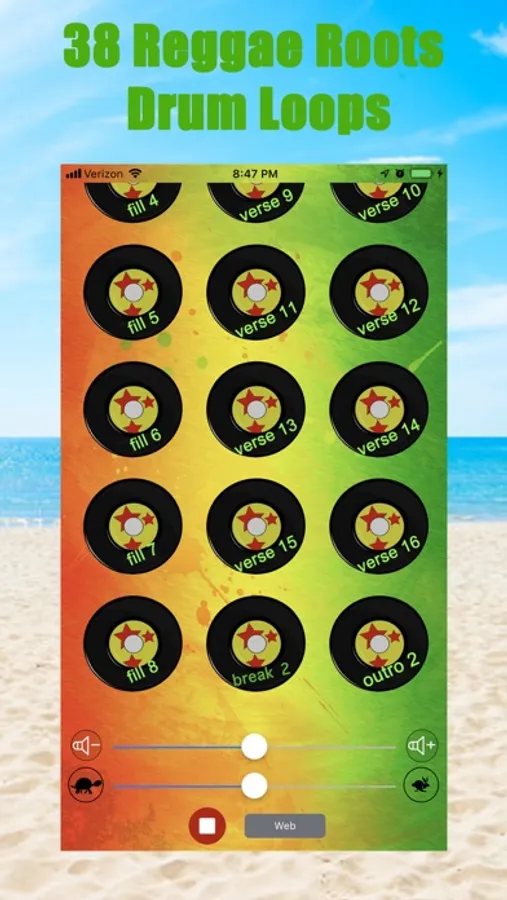 The heart of Reggae is the drums and this is the easiest beat machine ever designed. A single touch polyphonic percussion soundboard app seamlessly looping HD drum samples recorded on a Mapex kit. I put my heart and soul into making this the easiest possible drum app that all musicians will enjoy playing. This app is designed to be effortless to learn and play. If you are interested in playing with foundation reggae drums, this app is easiest and best. In addition it is a great tool for drummers to improve timing.