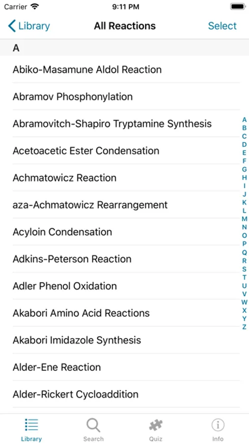The app is designed like a set of flash cards so it can be used as a learning tool as well as a reference. Each ‘card’ shows the reaction, its mechanism and examples from peer-reviewed, published literature. It also has a quiz mode that lets you test your knowledge.