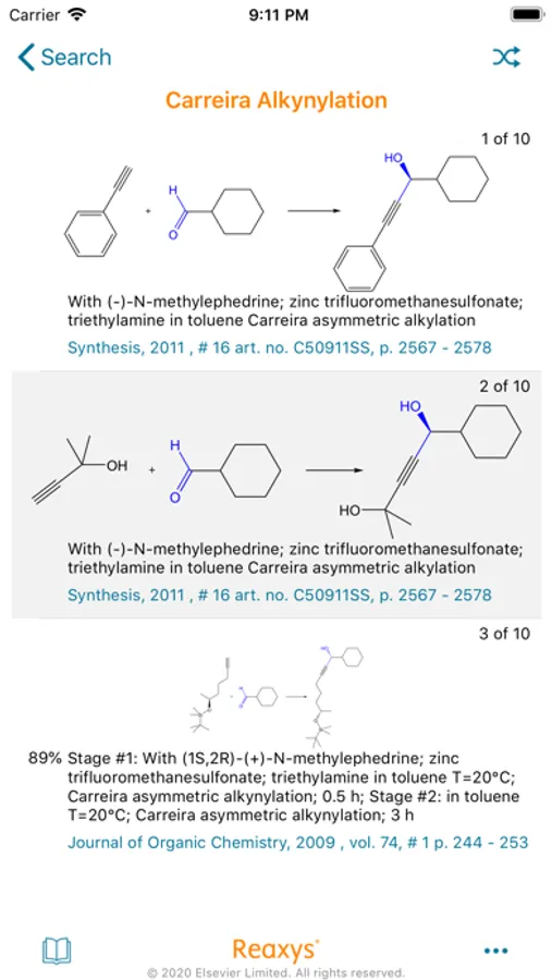 Linking into Reaxys enables you to find the most recent examples of each reaction, many with experimental details. Reaxys delivers experimental facts from the literature, enabling researchers to find the best synthetic routes and conditions. Find out more at https://www.elsevier.com/solutions/reaxys