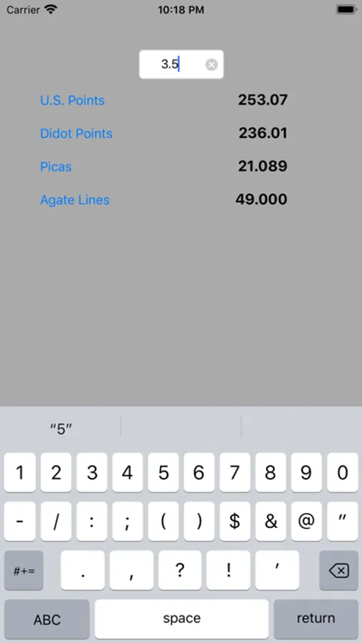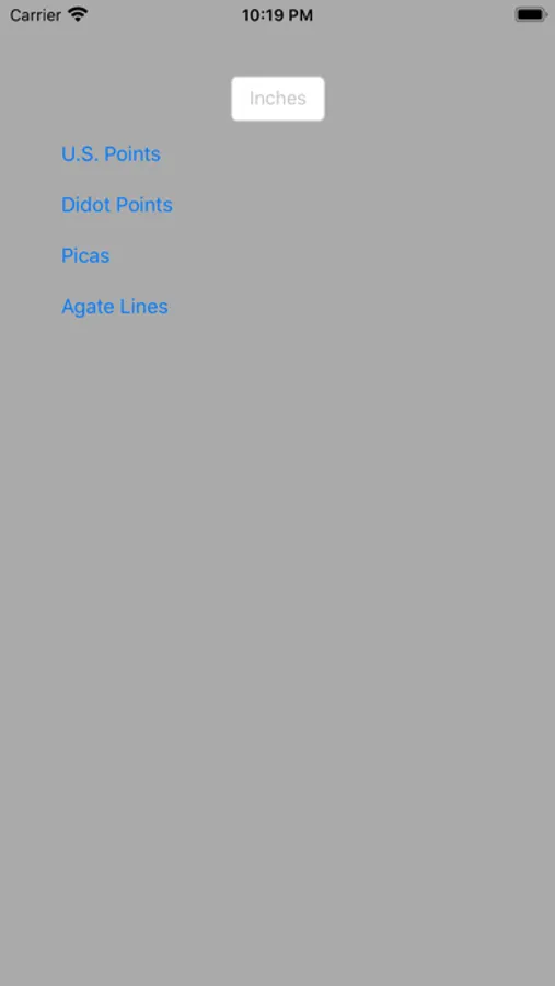 This app converts inches to U.S. Points, Didot Points, Picas and Agate Lines.