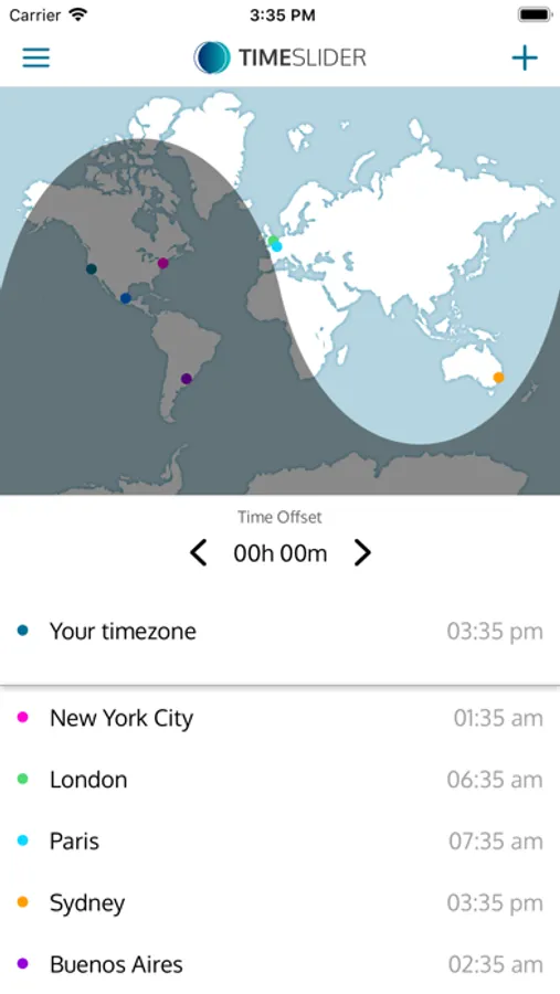 Select from thousands of the most populated cities on the planet and then slide back and forth through time with Timeslider's dynamic timezone converter.