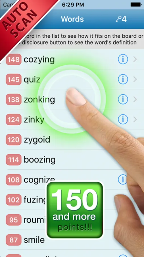 2 You choose the word from a list of suggested moves, we show you how it fits on the board. Don’t worry about the rare words like ZYMURGY – just use the built-in dictionary to see what they mean.
