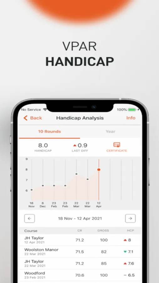 Please note that VPAR uses your location data in order to show accurate distances to greens and hazards. Continued use of GPS running in the background can dramatically decrease battery life.