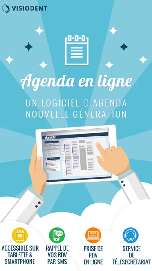 Elle vous permet de consulter et de mettre à jour votre agenda VISIODENT ainsi que vos contacts professionnels à tout moment et n'importe où grâce à votre iPhone.