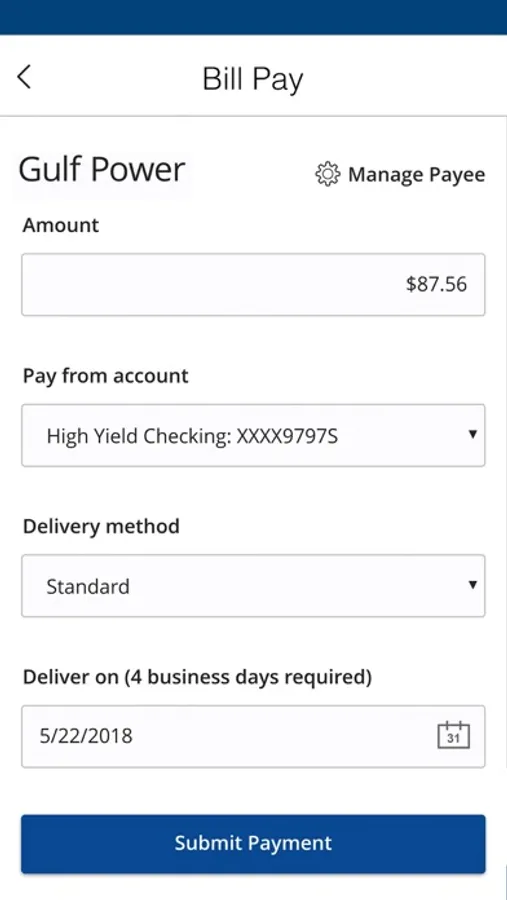 - Make a payment, add a new bill to pay and edit or cancel bill payments