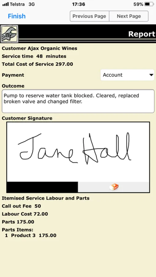 * 'Field Service Report' to deploy, manage and record repair and maintenance of plant and equipment. Add parts and prices for service in the field, using Mobile Data Studio; Dynamic Data function can manage thousands of parts; and