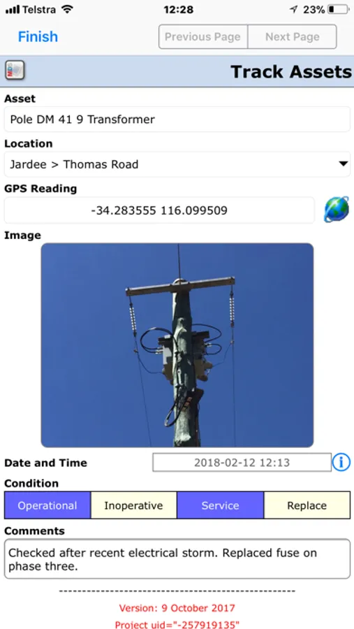 * 'Track Assets' in the field using GPS and camera images, and record the operational status of the assets;