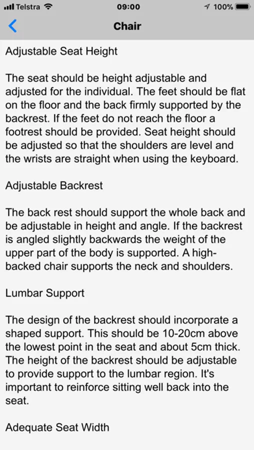 * 'Office Workstation' to assess the ergonomics and safety of computer workstations; each assessment point is supported by guidance notes for informed and consistent assessments. Tap point caption to see guidance notes.