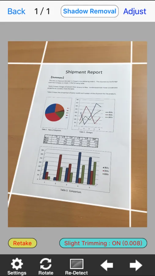 Upon importing images contained in your iPhone's Photo Album or those taken with your device's camera, this application automatically recognizes the frame (outline) in the pictures, renders them so that they appear to be viewed from the front, and even enhances their attractiveness through applying color correction. This enables a level of image quality reminiscent of something taken with a scanner.