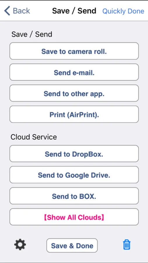 -Ability to forward to Evernote, GoogleDrive, Dropbox and OneDrive as JPEG or PDF format
