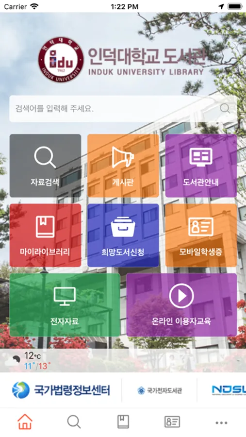 '인덕대학교 도서관' 기능은 다음과 같습니다.