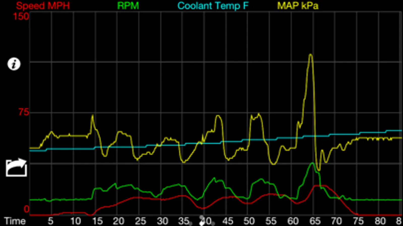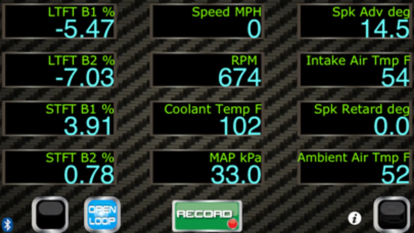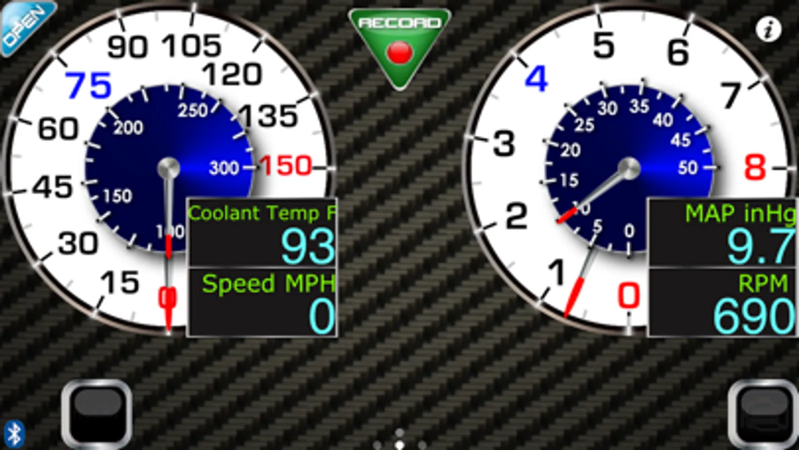 * Simply touch the RECORD button on the dashboard screen at any time to start and stop data logging sessions.
