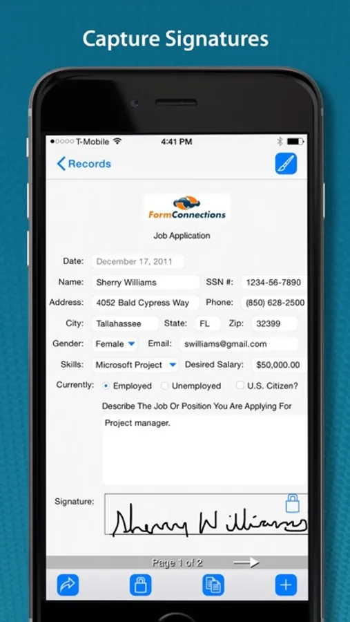 FormConnect is an easy to use app for designing and filling out forms for use on your iPhone and iPad. Its simple design allows you to customize the forms the way you want them to look.