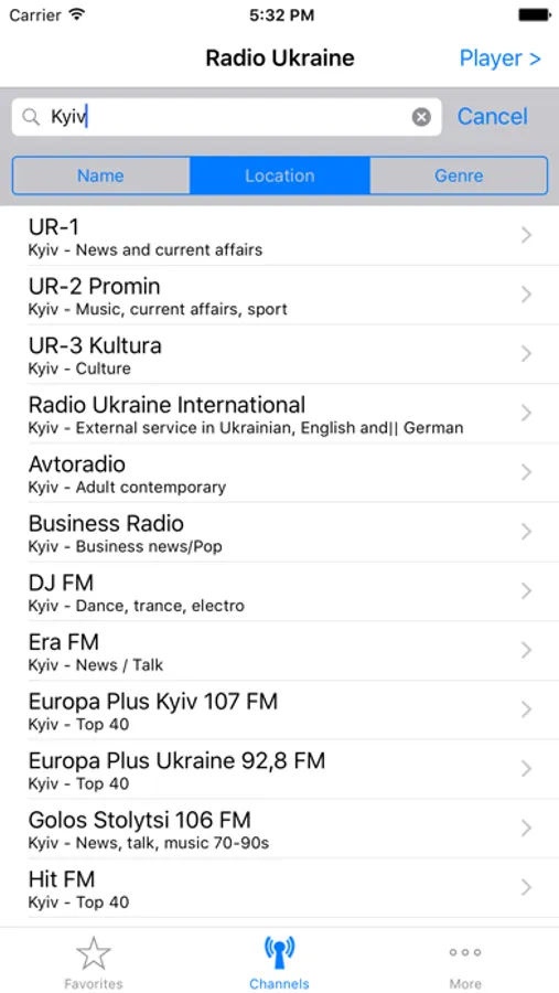 This application comes with over 110 radio stations from Ukraine completely free! You can sort and search by station name, location or genre. You can also keep a list of favorite stations for easy access.