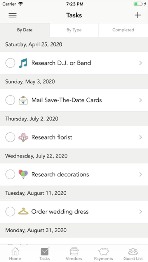 - Wedding date change? No problem. The task due dates will adjust to the new date if you choose that option.