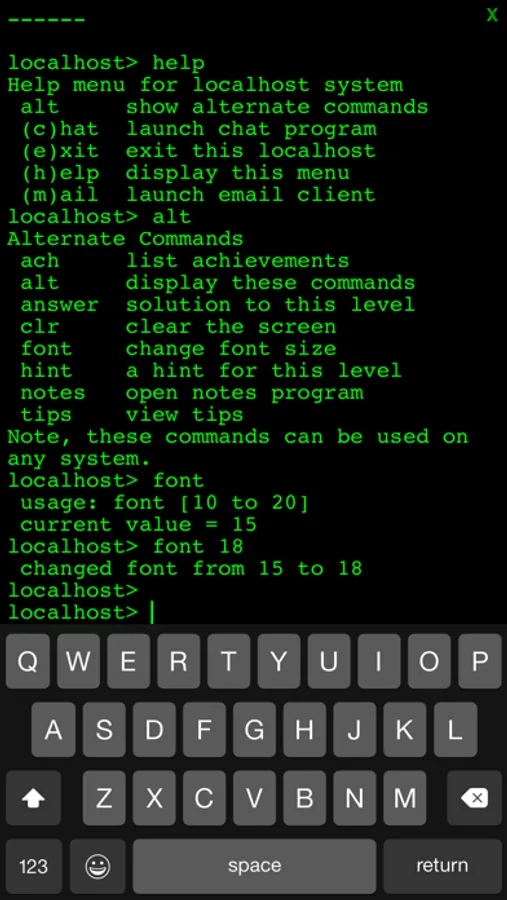 Stuck on a level? Just use the 'hint' or 'answer' commands to help you along.