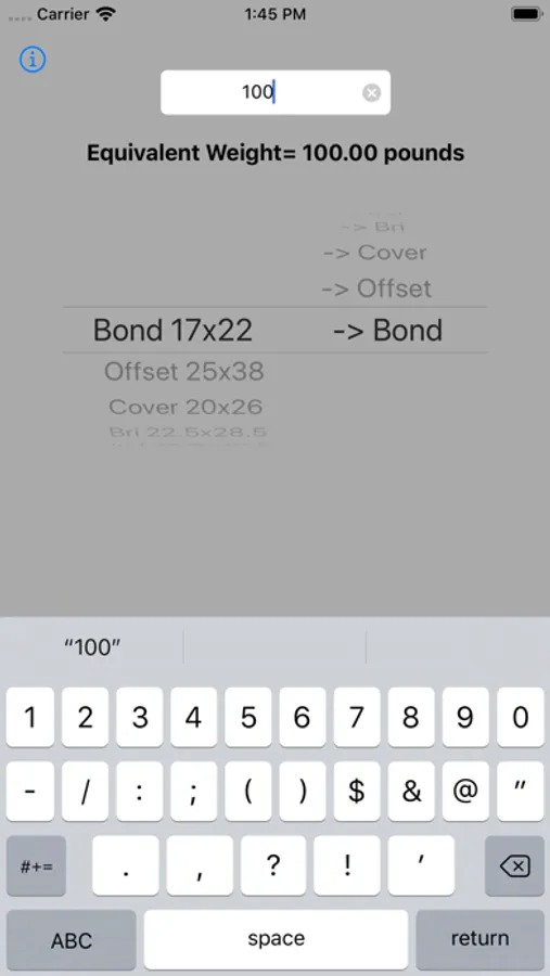 This app converts the basis weight of a given paper category to the equivalent basis weight of 7 other paper categories.