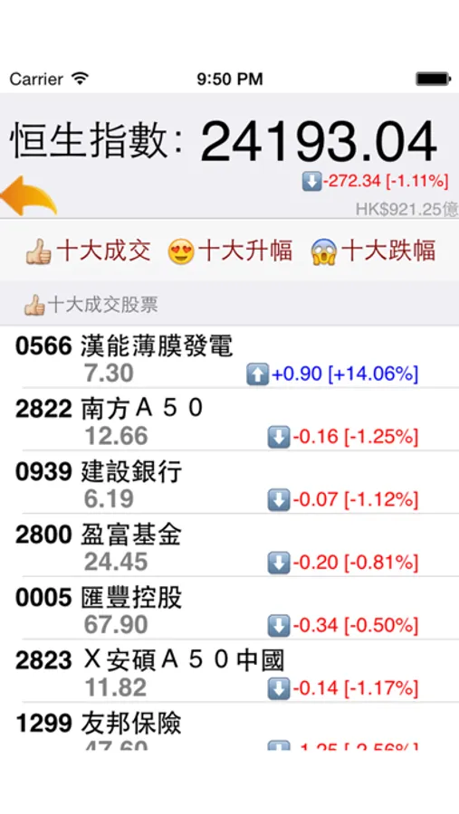 - 能表列十大升、跌幅香港股票