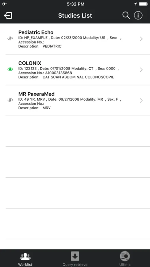 iPaxera keep your studies locally with interactive worklist with ability of specific search criteria, series visual grid, detailed study information including Name, ID, DOB, study description, study date, modality, gender, accession number, series description, series date, number of images/series.