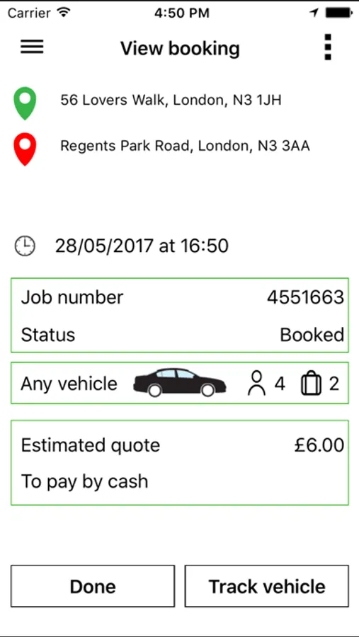 The app offers you the opportunity to place bookings in an instance with features including real live tracking of your vehicle.