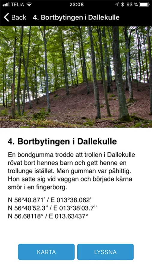 With the help the app you can also go treasure-hunting in th Land of Legends. The treasure you will find is of course an exciting story. Call up a telephone number and listen. Also here you have the choice of language: Swedish, English, or German.