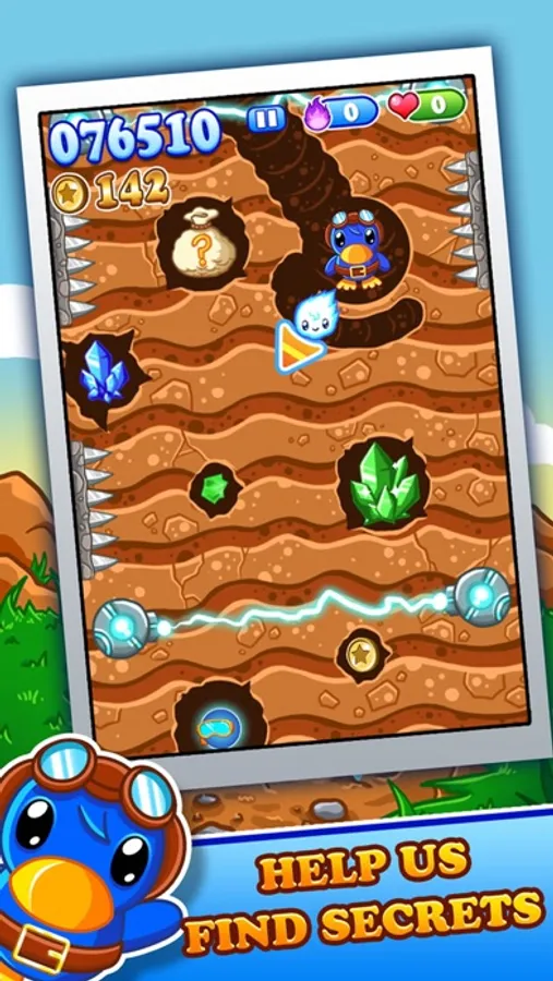 Dig for gold coins and gems, and collect all the secret items to complete your collection.