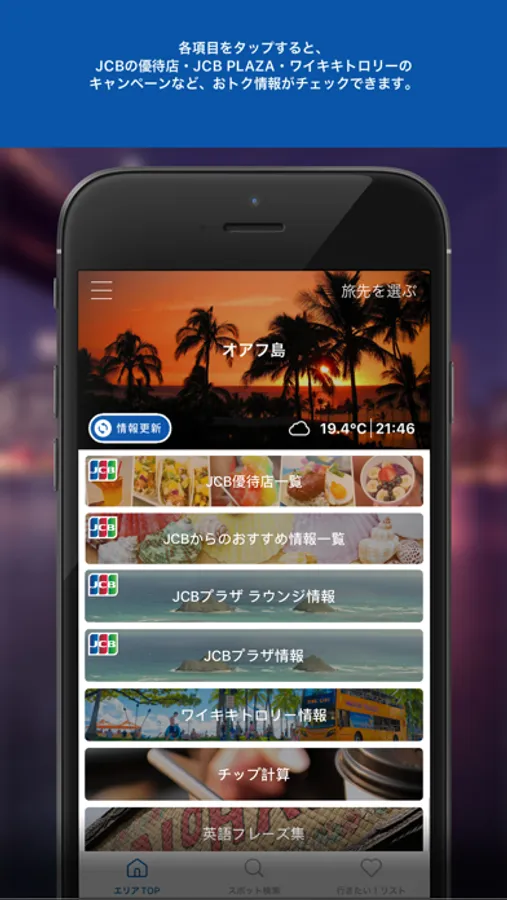 ◇◇ハワイで使えるJCBならではのおトクな優待情報を紹介する海外旅行ガイドアプリ(無料)◇◇