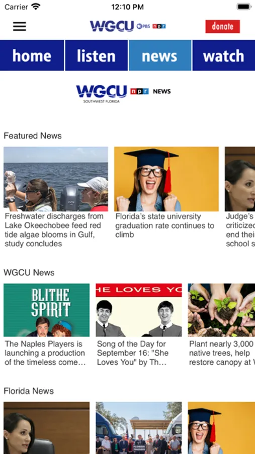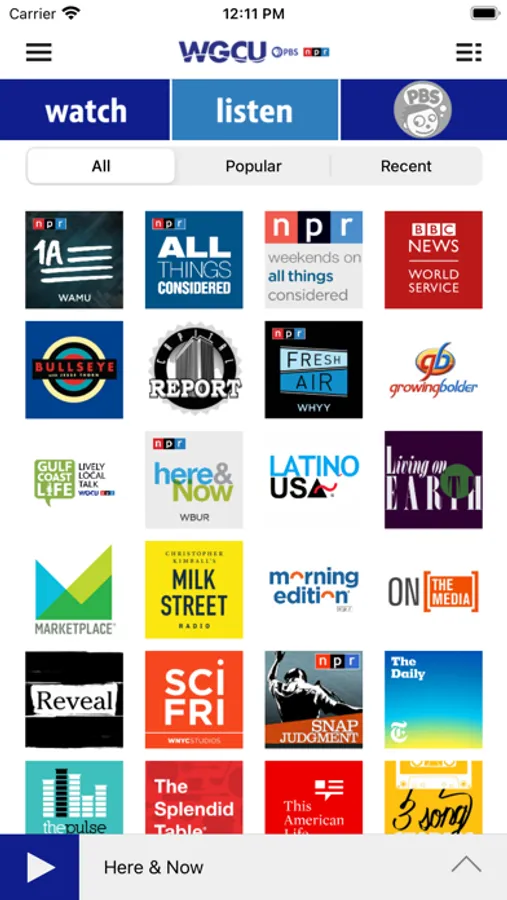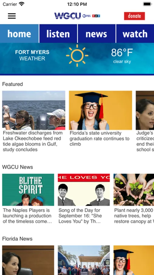 • Access public radio and TV programs from multiple content providers (WGCU, NPR, PBS) easily and quickly.