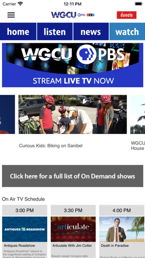The WGCU Public Media App allows you to listen to WGCU live, pause and rewind the live audio, and view the WGCU program schedule all at once! You can explore On Demand content, search for stories, bookmark a story for later, and wake up to WGCU with the alarm clock!