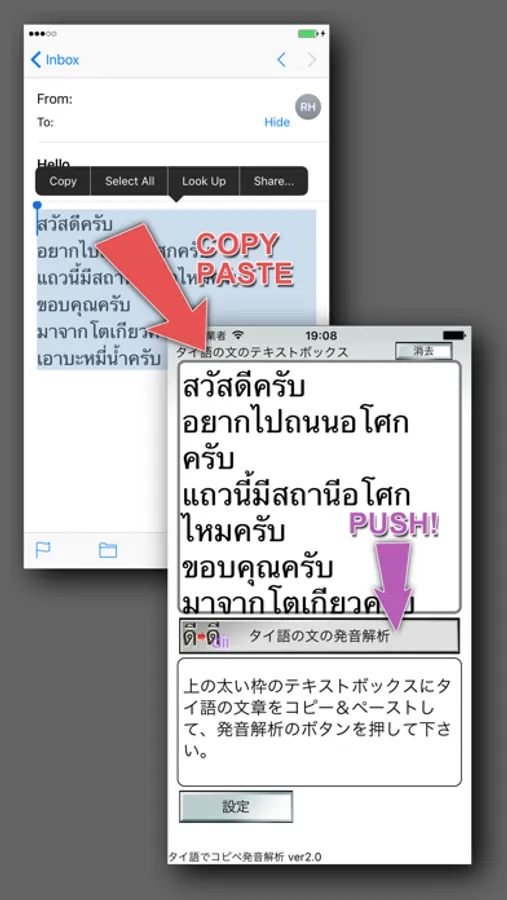 copy paste of thai sentences, And analysis by simply pressing a button analysis.