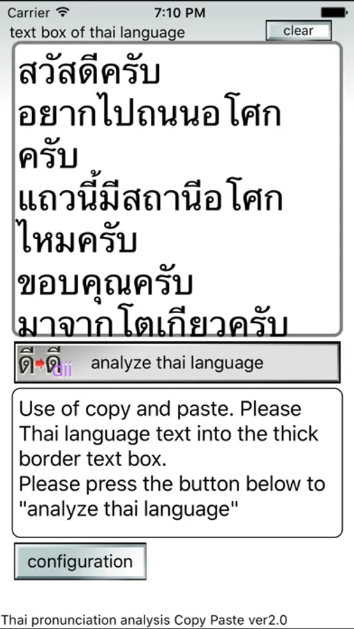 copy paste of the Thai language sentence, and press the "analyze" button.
